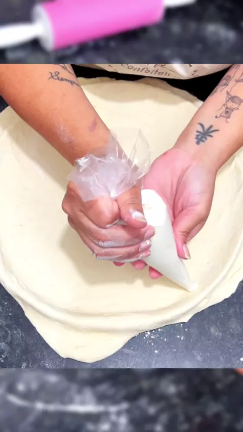Massa de pizza caseira com BORDA GIGANTE RECHEADA! Anote os ingredientes: 250 ml de agua morna 1 colher de aopa de açúcar 1 colher de sopa rasa de fermento para pão 1 colher de cafe de sal 3 colheres de sopa de oleo 500g de farinha de trigo