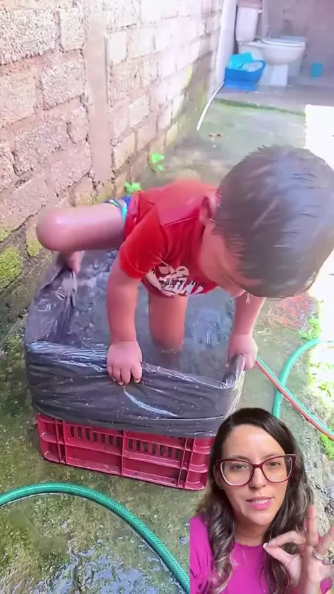 Olha como é fácil fazer a criançada feliz 💦 Com caixotes de mercantil, um saco resistente e água, a diversão está garantida. #selfcare #mentalhealth #healing #brincadeiracriativa #ideiaparacrianças