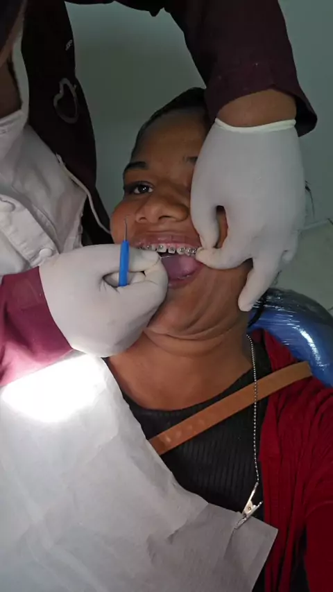 colocando aparelho no dente