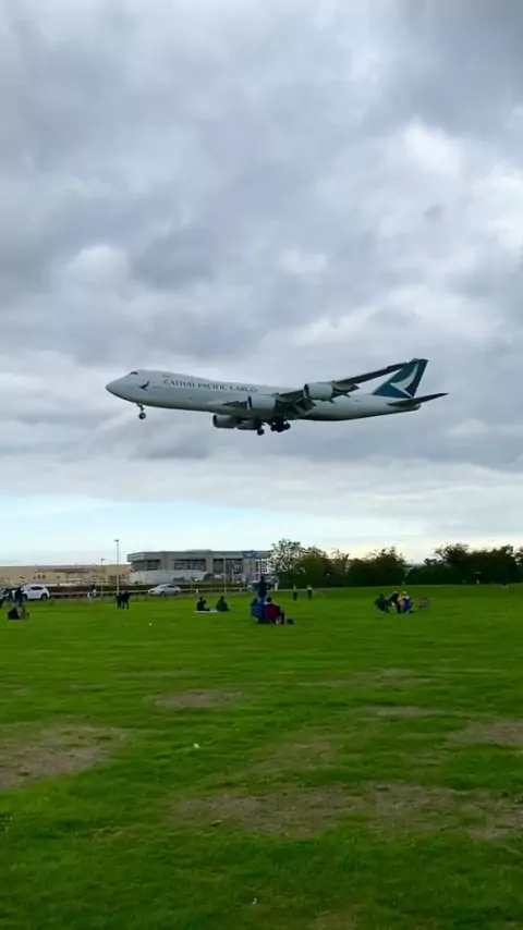 O poderoso Jumbo! Um Boeing 747-8F da Cathay Cargo chegando sobre a Myrtle Avenue em Londres Heathrow no ano passado do Dubai World Central! # aviation # aviator # flying # pilot # aviationedit # avgeek # aviationlovers # planes # # # page # cathay # cathaypacific # hongkong # heathrow # londonheathrow # 747 # boeing747 # boeinglovers # 7478 # 747lovers # dubai # london