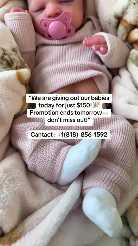 “We are giving out our babies today for just $150! 🎉 Promotion ends tomorrow—don’t miss out Message me on this phone +1 (818)-856-1592 #rebornbabydoll #reborncollector #fullsiliconebaby #rebornsforsale #fakebaby