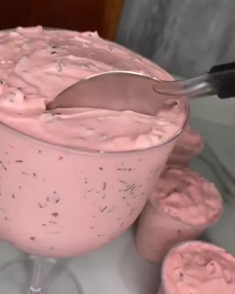 Sobremesa cremosa de morango 🍓, vem aprender essa delícia! Créditos: isabelaanaya