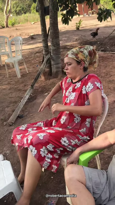 Os pais do compadre visitando eles e a comadre colocando eles pra trabalhar