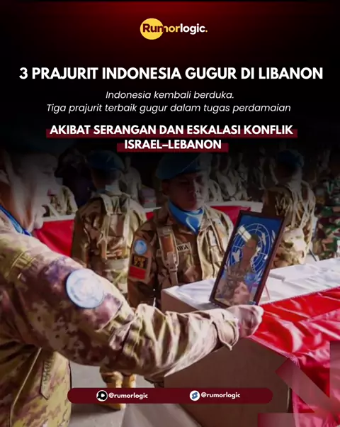 Duka menyelimuti Indonesia. Tiga prajurit terbaik bangsa gugur dalam menjalankan tugas mulia sebagai penjaga perdamaian dunia di Lebanon. Sertu Muhammad Nur Ichwan, Kapten Inf. Zulmi Aditya Iskandar, dan Praka Farizal Rhomadon telah menunjukkan keberanian dan pengabdian tanpa batas untuk negeri dan dunia. Pengorbanan mereka bukan hanya untuk Indonesia, tetapi untuk kemanusiaan. Selamat jalan para pahlawan. Jasamu akan selalu dikenang. ๐ฎ๐ฉ #RumorLogic #IndonesiaBerduka #PahlawanBangsa #TNI