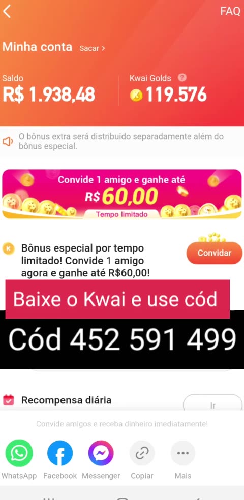 Use cód 452 591 499 na moedinha e vem ganhar dinheiro #kwaiSurpresa #kwaibonus #KwaiBrasil #kwaimepatrocina #viral @Kwai Brasil Oficial(O558843093) @Top Kwaiers Oficial(O1128395324)