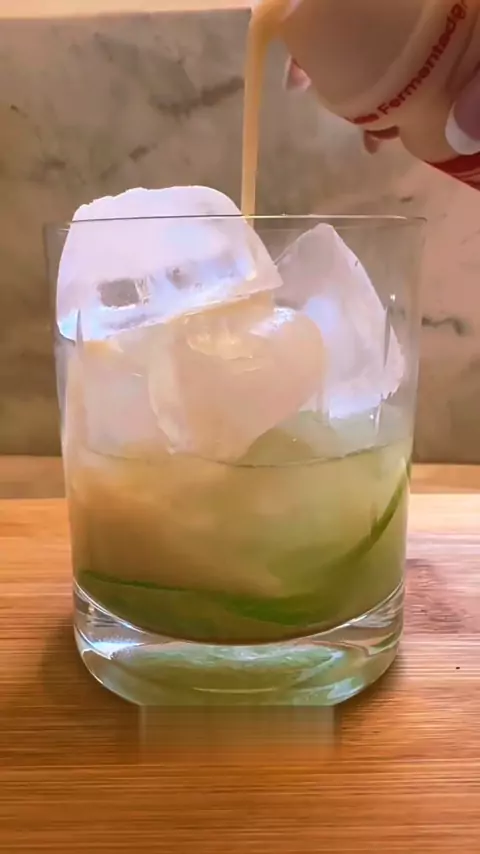 Caipirinha de yakult Limão Açúcar Vodka Gelo Yakult #drink #bebida #cachaça me segue