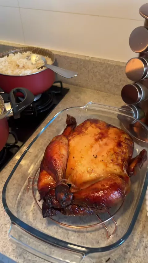 Almoço de domingo com frango assado e creme de milho 👩🏼❤️👨🏻🍽️🍗🌽 #Receita #Comida #casal #cozinha #topz