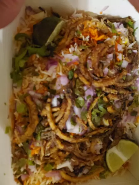 Gobi cauliflower dum biryani, and veg samosas 10/10