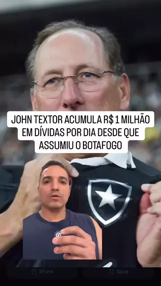 JOHN TEXTOR ACUMULA R$ 1 MILHÃO EM DÍVIDAS POR DIA DESDE QUE ASSUMIU BOTAFOGO Qual a sua opinião, torcedor? Deixa aí nos comentários… E não esquece de me seguir, curtir o vídeo e compartilhar com os amigos! Me segue também no @StudioVix #Botafogo #JohnTextor #Dividas