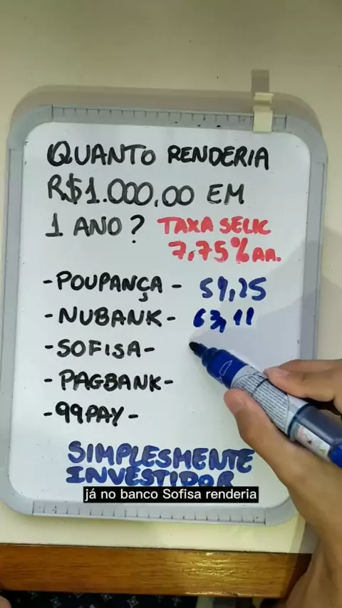 Quanto está rendendo mil reais investidos em algumas opções da renda fixa hoje? Mais informações nós comentários! #poupança #rendafixa #selic #investir #nubank