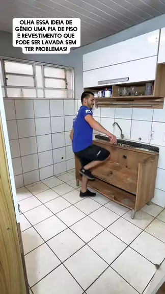 Olha essa ideia de gênio uma pia de piso e revestimento que pode ser lavada sem ter Problemas!👇🏻