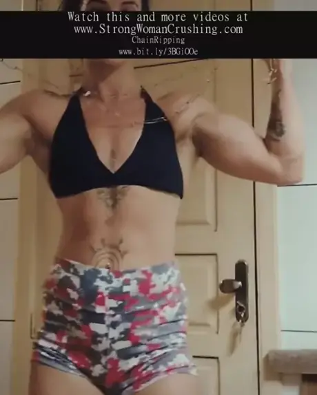 Phibi uses her muscles and rips a metal chain - https://bit.ly/3BGiOOe - #Phibi #ChainRipping #featsofstrength #flexfriday #musclegirllove