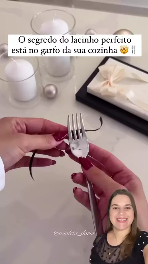 🎀 O segredo do lacinho perfeito está no garfo da sua cozinha 🤯🍴 Você nunca imaginou que um simples garfo poderia te ajudar a fazer laços perfeitos né? 🤯 💡Basta usar uma fita fininha, passar entre os dentes no garfo, dar um nozinho e pronto... lacinho impecável! ✨😍 🤭 Chega de laços tortos! Com esse truque, seus lacinhos vão ficar sempre perfeitos – e sem sofrimento! 😍🎀😊 Créditos ao autor: @wioleta_daria ❤️ #lacos #lacinhos #artesanato #trabalhomanual #diy