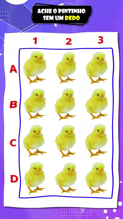 Desafie sua visão encontrando o pintinho sem um dedo neste desafio visual #TesteDeVisão #testecognitivo