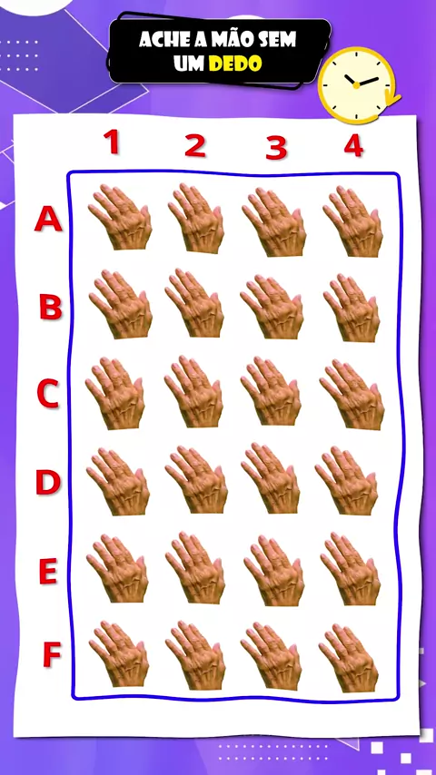 Desafie sua visão encontrando a mão que está sem um dedo neste teste visual #TesteDeVisão #testecognitivo