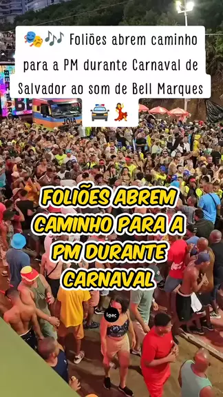 🎭🎶 Foliões abrem caminho para a PM durante Carnaval de Salvador ao som de Bell Marques 🚔💃 No meio da folia de Carnaval em Salvador, foliões se divertiam simulando uma luta de boxe ao som de Bell Marques 🎸. Mas, assim que a Polícia Militar da Bahia (PM-BA) apareceu no bloco, a galera interrompeu a brincadeira imediatamente para dar passagem aos militares. 📌 Bagunça com respeito! A cena mostrou que, apesar da animação, a organização e a segurança prevalecem na maior festa do Brasil! 🎊 👏
