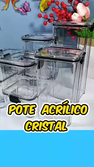 Potes Hermeticos Acrilico Cristal Com Trava Empilháveis Porta Mentimentos 460ml+700ml+1300ml+1800ml #pote #alimentos #kwaishop #Shop