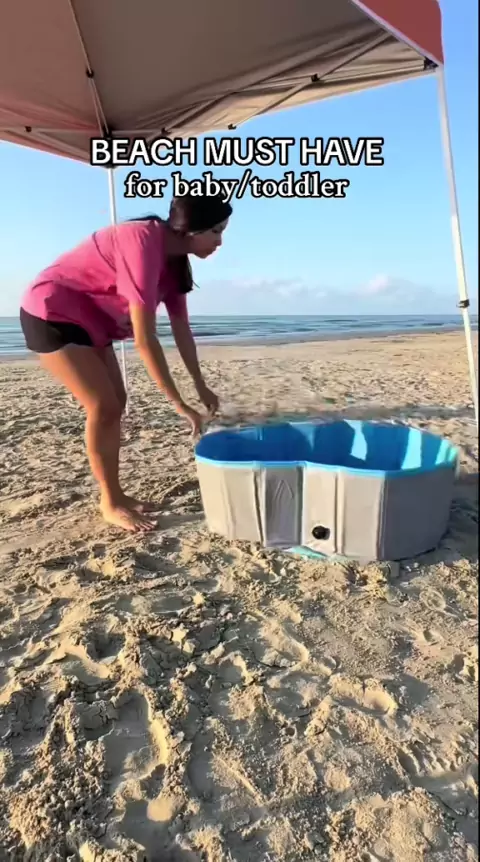 Ter uma mini piscina na praia sempre os mantém tão ocupados, este é tão fácil de levar em movimento. ☀ ️ # beachfinds # kidspool # beachbabyfinds # beachtoddlerfinds # beachmusthaves # toddlerbeachlife # babybeachday