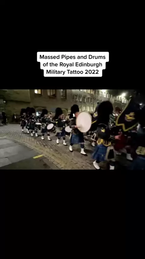 Os tubos e tambores maciços da Royal Edinburgh Military Tattoo 2022 marcham fora da Esplanada do Castelo de Edimburgo. # gaita de foles # massedpipesanddrums # remt # royaledinburghmiltarytattoo # bagpiper # royalairforce # rafpipesanddrums
