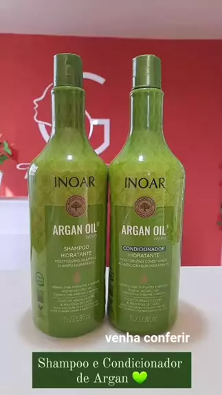 Inoar Kit Shampoo e Condicionador Argan Oil Hidratante 1L Pack Of 2 Para que serve? Um clássico da inoar, argan oil é fonte poderosa de beleza capilar. Suas múltiplas funções hidratantes e reparadoras transformam os fios fragilizados e ressecados, desembaraçando, amaciando os fios e devolvendo o brilho. #cabelomacio #inoar #cabelosedoso comenta "EU QUERO" para receber o link para compra!
