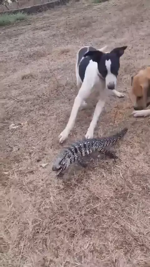 cachorros caçando lagarto teiú #teiu #teju #animais #viral #kwai
