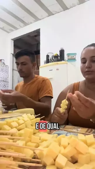 montando espetinhos de queijo para vender #trabalho #queijo #Comida #empreender