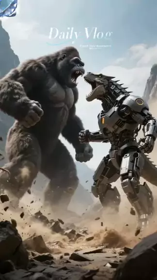 Titan Ape vs. Cyborg Gods: A Mortal's Epic Battle **#TitanApeVsMachines** - **#CyberpunkBattle** - **#HumanVsRobot** - **#SciFiShowdown** - **#MechWarriors**