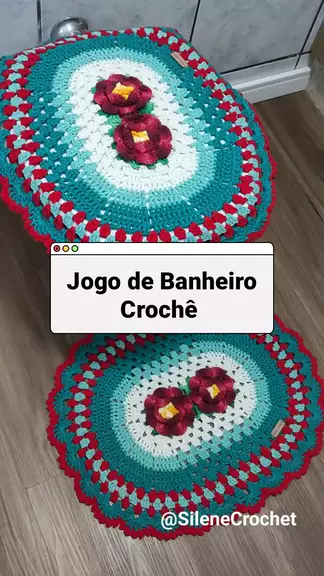 Jogo de Banheiro 3 peças As peças são feitas na técnica do crochê e são usados barbantes de espessura n°6. #donadecasa #diy #crochetersoftiktok #crochet #tapetedecroche