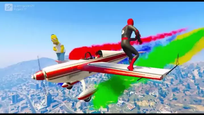 Boneco de brinquedo favorito das crianças do Homem-Aranha e jogo de carro de corrida de desenhos animados jogo de taxiamento de avião em Sky City.