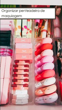 Organizar maquiagem na penteadeira usando caixas de acrílico